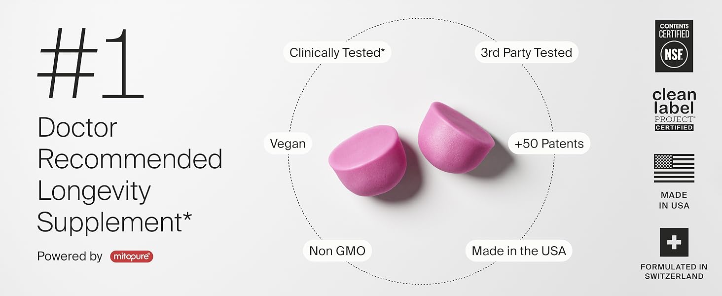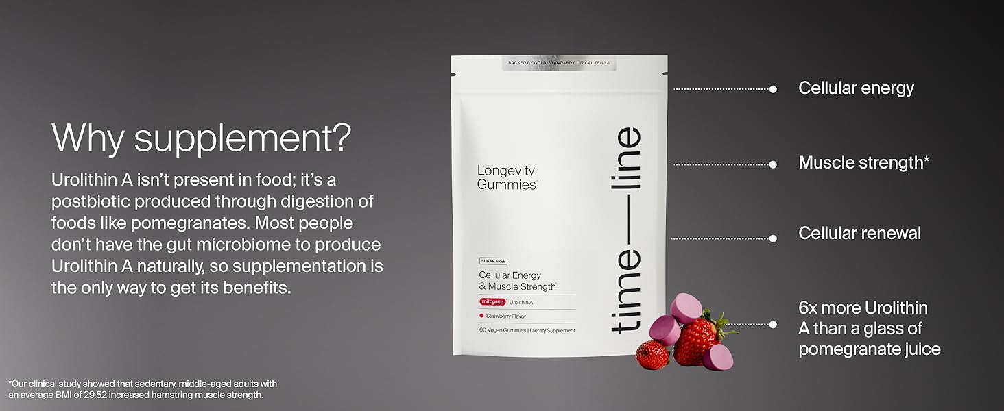 Take two gummies daily for the recommended dose of Urolithin A (500mg of Mitopure).